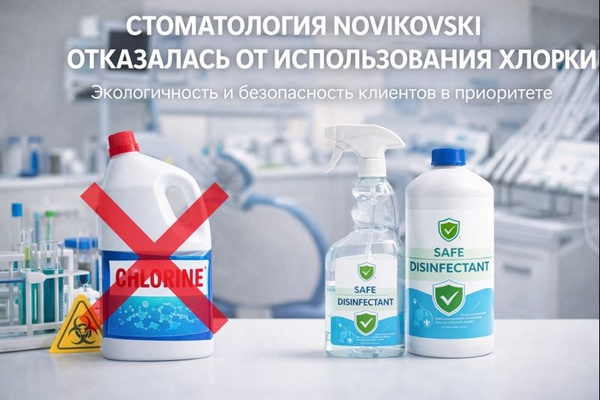 Стоматология NOVIKOVSKI, отказавшись от использования хлорсодержащих средств, подает пример осознанного подхода к организации медицинского пространства. Это решение требует дополнительных ресурсов, но отражает стремление действовать в интересах людей, а не только исходя из финансовых соображений.