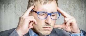 - Place of localization of unpleasant sensations: forehead, temples, back of the head.